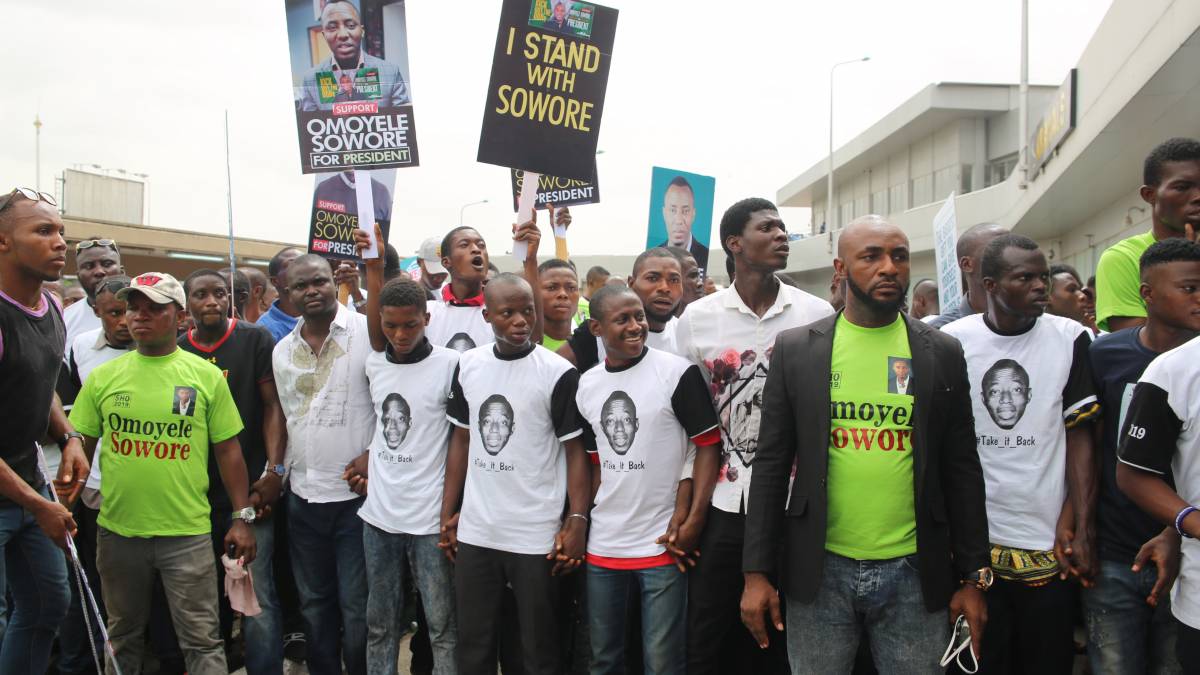 A massive crowd caused a scene at the International wing of the Muritala Airport to welcome leading presidential Aspirant, Omoyele Sowore as he returns to Nigeria.